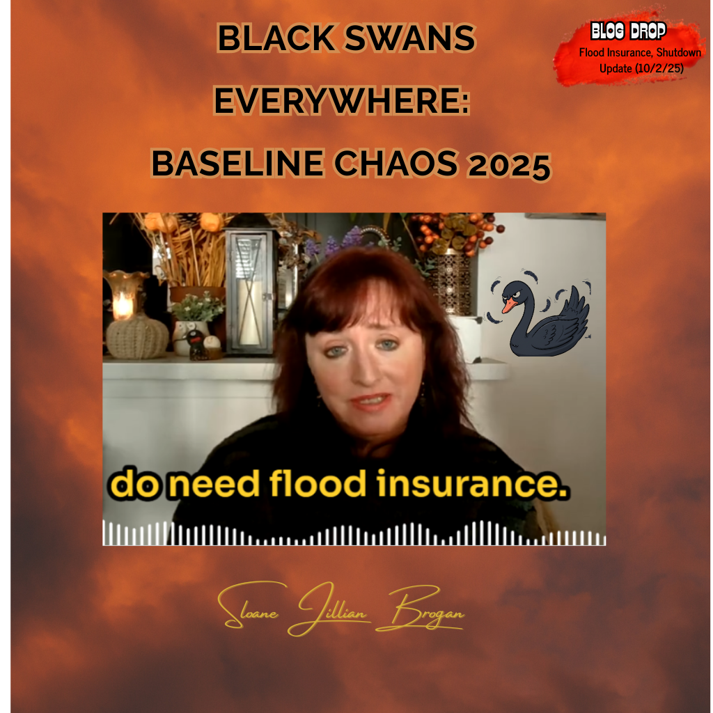 Sloane J Brogan 10/2/25 Sloane J Brogan 10/2/25 Black Swans Everywhere: Baseline Chaos 2025 โ Flood Insurance & Federal Worker Fallout in the Government Shutdown Read More
